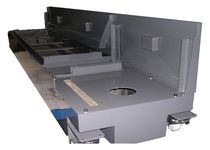 Nádrže k CNC soustruhu. Ukázka 3D modelu technické dokumentace. Hotová nádrž na chladící emulzi k CNC soustruhu vyrobená podle výše zmiňované dokumentace. Přední čelo nádrže slouží zároveň jako část předního čela stroje.